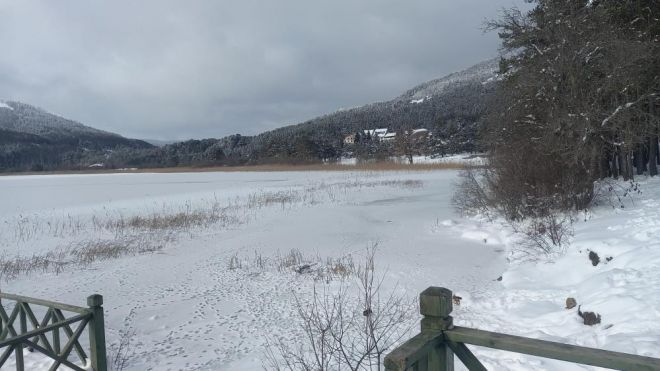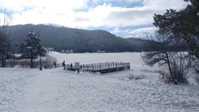 Türkiye'nin önemli turistik yerlerinden Abant Gölü Milli Parkı'nda, kar yağışı aralıklarla etkisini sürdürüyor. Soğuk havanın etkisiyle tamamen buz tutan gölde, yeşil alanlarda kar kalınlığı 20 santimetreye ulaştı. Donmuş göl, ziyaretçilere kartpostallık manzaralar sunarken, bölgenin doğal güzellikleri de hayranlık uyandırdı. Öte yandan ziyaretçiler, donmuş gölün üzerine çıkmamaları konusunda jandarma ekipleri ve uyarı tabelaları ile bilgilendiriliyor.