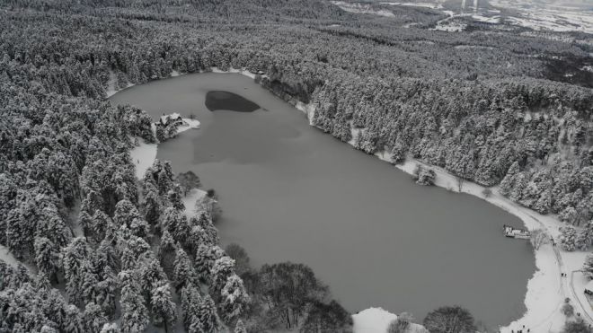Bolu’da geçtiğimiz hafta başlayan ve yaklaşık 4 gün boyunca aralıksız olarak devam eden kar yağışıyla birlikte yüksek kesimlerde kar kalınlığı 120 santimetreye ulaştı. Yüzde 65’i ormanlarla kaplı Bolu’nun beyaz örtüyle kaplanmasının ardından kar yağışı etkisini kaybetti. Kar yağışının sona ermesiyle birlikte kentte dondurucu soğuklar hayatı olumsuz etkiledi. Kent merkezinde hava sıcaklıkları gece saatlerinde sıfırın altında eksi 4 derecelere kadar düşerken, yüksek kesimlerde hava sıcaklığı eksi 11,8 olarak ölçüldü. Hava sıcaklıklarının düşmesiyle birlikte özellikle turizm merkezlerinde bulunan ve tatilcilerin ilgi odağı olan göllerin yüzeyleri buzla kaplandı. Kent merkezine 13 kilometre uzaklıktaki Gölcük Tabiat Parkı ve 45 kilometre uzaklıktaki Abant Tabiat Park’ındaki göllerin buzla kaplanmış yüzeylerinin havadan görüntüsü mest etti.