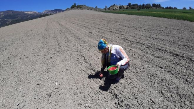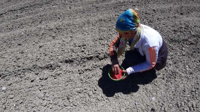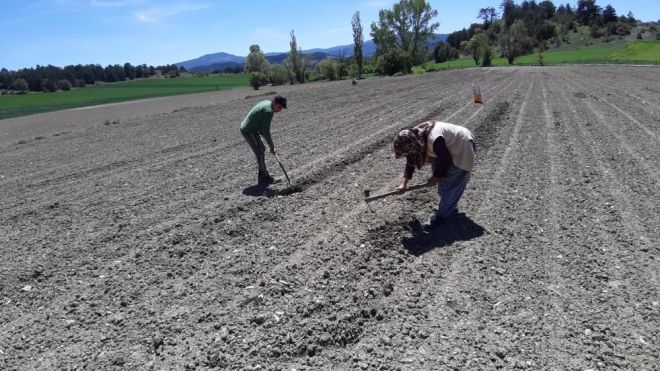 3 kez tarlayı ektiklerini ifade eden Özcan Filiz’in annesi Huriye Filiz, “Burada domuzlar tarlamızdaki mahsulleri yemiş. Bu 3’üncü kez ekişimiz. İki sefer traktörle ektirdik bu sefer motor girmediği için elimizde ekmeye başladık. Başa çıkılacak gibi değil domuzlar” dedi.