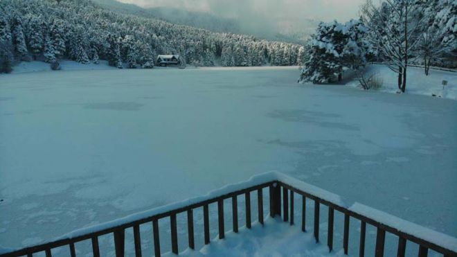 Kar yağışının etkili olduğu Gölcük Tabiat Parkı’nda gece saatlerinde hava sıcaklıklarının eksi 13 dereceye kadar düşmesiyle park içerisindeki göl de buzla kaplandı. Ziyaretçilerde şaşkınlığa neden olan donmuş gölün havadan görüntüsü kartpostallık manzarasıyla hayranlık uyandırdı.
