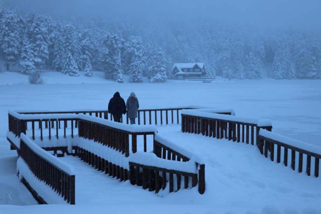 Türkiye’nin en önemli turizm merkezlerinden birisi olan ve Bolu’nun incisi olarak bilinen Gölcük Tabiat Parkı kar yağışıyla birlikte beyaz örtüyle kaplandı. Kent merkezine 13 kilometre uzaklıkta bulunan ve kar kalınlığının 50 santimetreye ulaştığı tabiat parkı tatilcilerin ilgi odağı oldu. Fotoğraf tutkunlarının özellikle kış mevsimlerinden vazgeçilmezlerinden birisi olan Gölcük Tabiat Parkı’na gelen tatilciler karlı havada keyifli anlar yaşadılar. Göl çevresinde yürüyüş yapan, bol bol fotoğraf çektiren tatilciler eşsiz manzaranın tadını çıkardı.