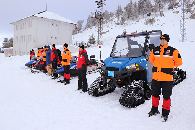 Edinilen bilgiye göre, Bolu'da Köroğlu Dağları'nın zirvesindeki 2 bin 200 rakımlı Kartalkaya Kayak Merkezi'nde bulunan Jandarma Komutanlığı'nda görevli özel eğitimli Jandarma Arama Kurtarma ve Jandarma Özel Asayiş Komutanlığı Timi, hava sıcaklığının sıfırın altında 15 dereceye kadar düştüğü bölgede arama kurtarma tatbikatı düzenledi. Ekipler tatbikat senaryosu gereği ilk olarak kayak pistinin en dik bölgesi olan Kara Pist'te düşerek yaralanan tatilciyi kurtarmak için harekete geçti. İhbarın alınmasının ardından harekete geçen ekipler, kar motorları ve kurtarma için gerekli olan özel donanımlarıyla yaralı tatilcinin olduğu bölgeye gitti. Kurtarma çalışması için gerekli olan düzeneğin kurulmasıyla birlikte ekipler, dik yamaçta yaralı tatilcinin olduğu yere indi. Kar ve tipi altında gerçekleştirilen tatbikatta sedyeye konulan yaralı halatlar yardımıyla dik olan pistten aşağı indirilerek arazi aracına konuldu.