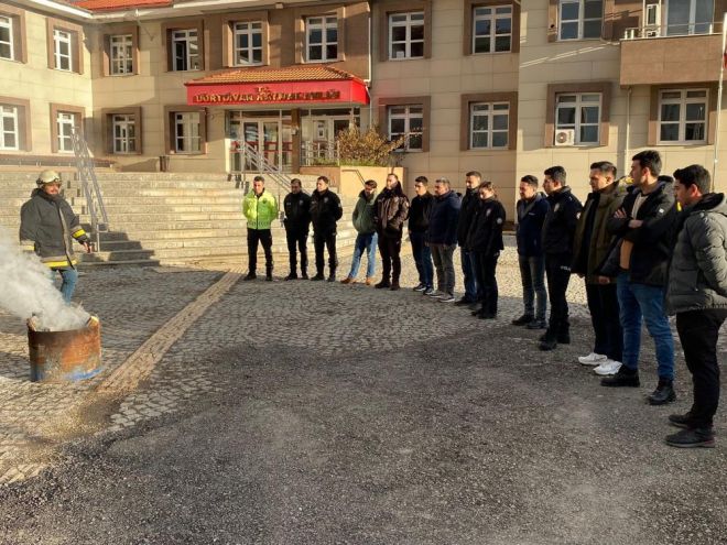 Dörtdivan İlçe Emniyet Amirliği ekipleri tarafından yangın eğitimleri devam ediyor. İtfaiye ekipleri tarafından Dörtdivan İlçe Emniyet Müdürlüğü’nde görev yapan polis memurlarına yangın eğitimi verildi. Uygulamalı olarak yapılan eğitimde alevlere nasıl müdahale edilmesi gerektiği gösterildi.