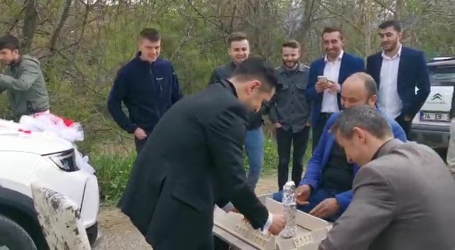 Bolu’nun Göynük ilçesine bağlı Örencik köyünde, Sercan Şahin ve Masude Öztop dünya evine girdi. Düğün sabahında Örencik köyünden Göynük ilçesinin merkezine gelin almaya giden konvoyu damat Sercan Şahin’in arkadaşları durdurdu. Damadın arkadaşları İlker Metin, Taner Metin, Mehmet Ural yolun ortasına okey masası kurdu. Damadı da okey masasına oturtan arkadaşları, damada okey oynattırdı. Düğün konvoyunda yaşanan ilginç anlar ise kameraya kaydedildi. Göynük halkı, Göynük ilçesinde bu tarz düğün geleneklerinin sürdürüldüğünü ifade etti. Damadın okey oyununda kazanmasıyla birlikte düğün konvoyu gelin almaya doğru hareket etti.