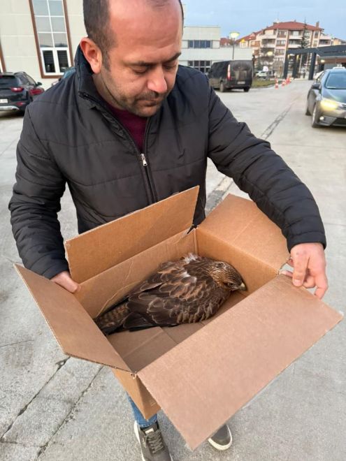 Edinilen bilgiye göre, Gerede ilçesi D-750 kara yolunda seyreden bir otomobilin camına çarpan kızıl şahin yaralandı. Aynı istikamette seyreden başka bir araçtaki vatandaşlar şahini fark etti. Yol kenarına aracını park eden duyarlı vatandaşlar durumu, Doğa Koruma ve Milli Parklar Şube Müdürlüğü görevlilerine bildirdi. Görevlilere teslim edilen yaralı şahin, tedavi edilmek üzere veteriner kliniğine götürüldü. Yaralanan kızıl şahin tedavisinin ardından doğal ortamına salınacak.