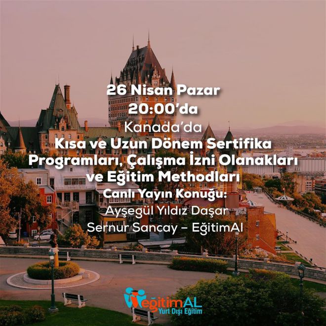 26 Nisan Pazar Kanada’da Kısa ve Uzun Dönem Sertifika Programları, Çalışma İzni Olanakları ve Eğitim Methodları.
