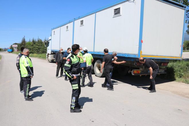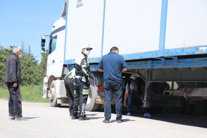 Bolu’da İl Emniyet Müdürlüğü Asayiş ve Trafik Şube Müdürlüğü ekipleri korona virüs tedbirleri kapsamında D-100 karayolu üzerinde araç ve sürücüler üzerinde uygulama yaptı. Karacaağaç mevkiinde yapılan uygulamada İstanbul istikametine seyir halinde olan A.N. idaresindeki 06 FY 2289 plakalı konteyner yüklü tır durduruldu. Ekipler yaptıkları sorgulamada tırın plakasının sahte olduğunu belirledi. Tırda yapılan detaylı incelemede şasi numarası da bulunmayan tırı güvenli bölgeye çeken ekipler, ruhsatı bulunmayan sürücü A.N. hakkında işlem başlattı. Sahte plaka takmak ve ruhsat bulundurmamak suçlarından 8 bin 796 lira para cezası kesilen A.N.’nin ehliyetine de 2 ay süreyle el konuldu. Ayrıca sürücü A.N. hakkında sahte plaka kullanmaktan idari işlem başlatıldı. Sahte plaka takılı tır ise otoparka çekildi.