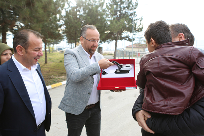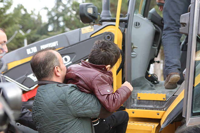 En büyük hayali kepçe kullanmak olan 8 yaşındaki bedensel engelli Yusuf Vural, Bolu Belediye Başkanı Tanju Özcan sayesinde bu hayalini gerçekleştirdi. Yusuf’un hayalini öğrenen Başkan Özcan, hemen bir program düzenlenmesi talimatı vererek, Bolu Belediyesi Fen İşleri Müdürlüğü’ne Yusuf’u ve ailesini davet etti. Başkanın daveti üzerine Aşağısoku Mahallesi’nde bulunan Fen İşleri Müdürlüğü’ne gelen Yusuf Vural’ın heyecanı gözlerinden okunuyordu. Bolu Belediye Başkanı Tanju Özcan tarafından kazıcı/yükleyici iş makinesine bindirilen küçük Yusuf, iş makinesi operatöründen kısa bilgiler aldıktan sonra iş makinesinin kazıcı kepçesini tek başına hareket ettirdi. Programın devamında Bolu Belediye Başkanı Tanju Özcan, Yusuf Vural’a maket iş makinesi hediye etti. Hediyesini de çok beğenen Yusuf, Başkan Özcan’a teşekkür etti.