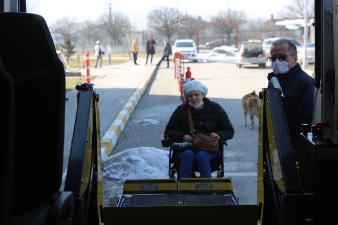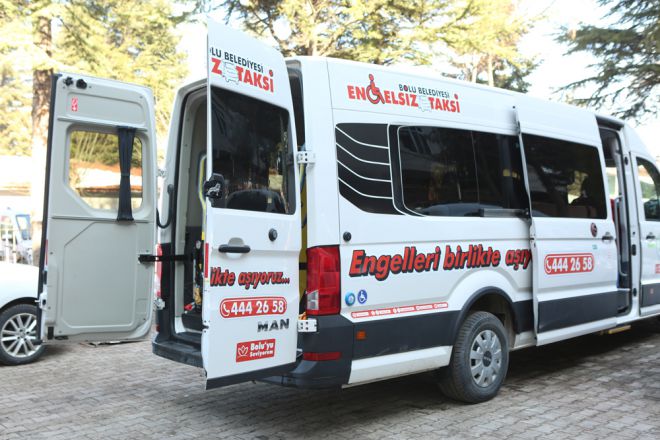 Bolu Belediyesi her biri 6’sı hasta, 6’sı refakatçi olmak üzere 12 kişi taşıma kapasiteli 2 adet asansörlü engelli taksi ile engelli bireylere haftanın 7 günü hizmet veriyor. Diyaliz, fizik tedavi, hastane kontrolleri gibi devamlılık gerektiren sağlık ihtiyaçlarını karşılamakta zorluk çeken engelli vatandaşlar, belediyenin 4442658 numaralı hattını arayarak asansörlü engelli taksi aracından ücretsiz yararlanıyor.