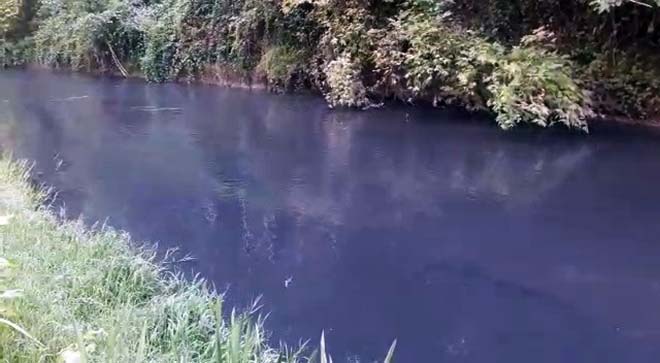 Her hafta sonu bölgede bulunan fabrikaların kaçak olarak sabah saatlerinde bıraktıkları atıklar nedeni ile siyah ve mavi rengine bürünen derenin görüntüsünü çeken Kadirbey Mahalle Muhtarı Ercai Pınar, suda yaşanan kirliliği gözler önüne serdi.