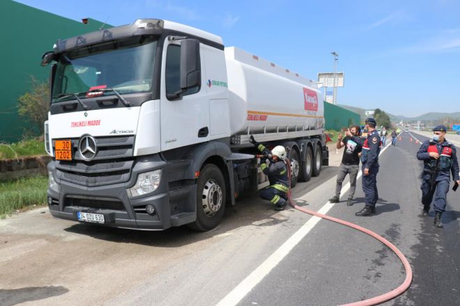 Olay, D-100 Karayolu Elmalık mevkiinde meydana geldi. Edinilen bilgiye göre, Ankara istikametine seyir halinde olan Özcan Küçük idaresindeki 34 DZU 630 plakalı mazot yüklü tankerin çekici kısmında yangın çıktı. Araçtan dumanların yükseldiğini gören sürücü Küçük, tankeri yol kenarına çekerek itfaiye ekiplerinden yardım istedi. İhbar üzerine olay yerine itfaiye, polis ve jandarma ekipleri sevk edildi. Ekiplerin müdahalesiyle mazot yüklü tankerde çıkan yangın büyümeden söndürüldü.