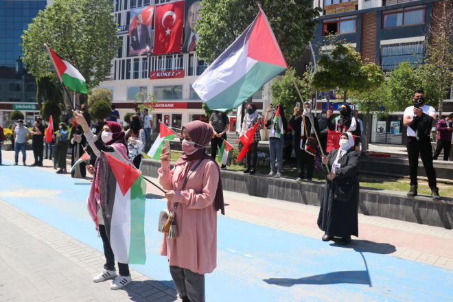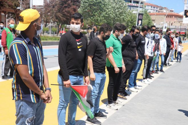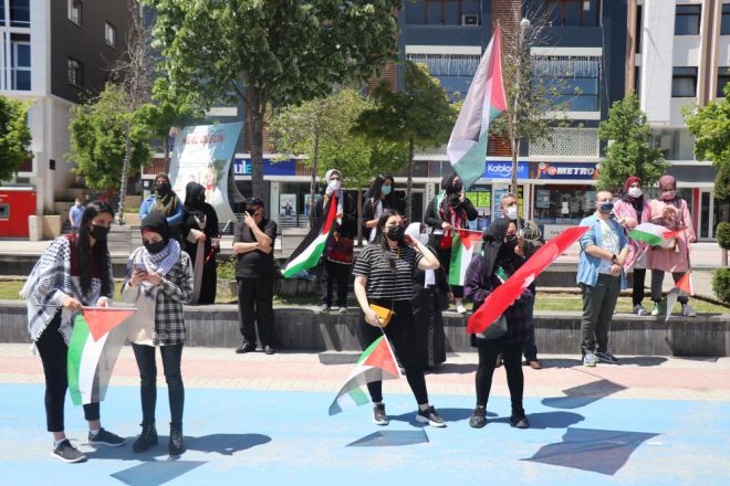 Bolu’da, öğrenim gören üniversite öğrencileri İsrail’in ülkelerinde yaptıkları saldırıları kınamak ve ölenler için gıyabi cenaze namazı kılmak için bir araya geldi. İzzet Baysal Caddesi üzerinde bulunan Kadı Camii’de yaklaşık 100 kişilik grup ülkelerinde hayatlarını kaybedenler için gıyabi cenaze namazı kıldı. Cenaze namazının ardından basın açıklaması yapan grup İsrail’in saldırılarını kınadı.Öğrenciler adına basın açıklamasını okuyan Abdullah Bakır, “İsrail geçmişten şu ana kadar bizim topraklarımız üzerinde şiddet ve baskı uyguluyor. Biz Arap olmadan önce Müslümanız. Dünya ve bütün batı toplumları acılarımızı göz ardı ediyor. Ama yetti artık. Biz Müslüman olarak hakkımızı almak istiyoruz. Kanımızın son damlasına kadar bütün zalimlerin karşısına çıkacağız. Filistin hepimizin ve sonsuza kadar kalacaktır. Sonunda Filistin Kudüs’ün ebedi başkenti olacaktır” dedi.