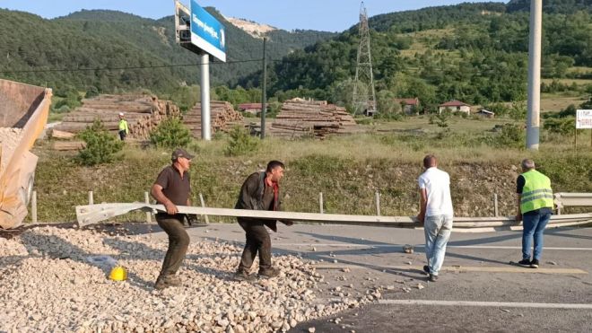 Kaza, D-100 karayolunda Rüzgarlar köyü mevkinde meydana geldi. Edinilen bilgiye göre, Rüzgarlar mevkisinde bulunan taş ocağından D-100 karayoluna seyir halinde olan Rıdvan Ü. yönetimindeki 14 BS 059 plakalı taş yüklü kamyon freni patladı. Freni patlayan kamyon kontrolden çıkarak toprak yoldan D-100 karayolu Ankara yönüne uçtu. Bariyerleri parçalayarak yola uçan kamyonda bulunan sürücü Rıdvan Ü. ve ismi öğrenilemeyen yolcu konumunda bulunan kişi yaralandı. Kaza nedeniyle yolun Ankara yönü araç trafiğine kapandı. Olay yerine polis, jandarma, itfaiye, sağlık ve AFAD ekipleri sevk edildi. Yaralanan sürücü ve yolcu hastaneye kaldırıldı. Ekipler yolun ulaşıma açılması için çalışmalarını sürdürüyor. Trafik ekipleri sürücüleri alternatif güzergahlara yönlendiriyor. Kazayla ilgili soruşturma başlatıldı.