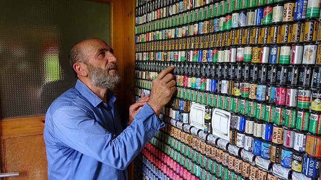Bir dönemler fotoğraf makinelerinde kullanılan makaralı filmler bugün artık nostaljik olurken, Trabzon’da 42 yıldır gazetecilik yapan Şemsettin Öztürk, eski dönemlerde kullandığı film makaralarını biriktirerek evinin iç ve dış cephesini bunlarla süsleyerek evini bambaşka bir hale getirdi.