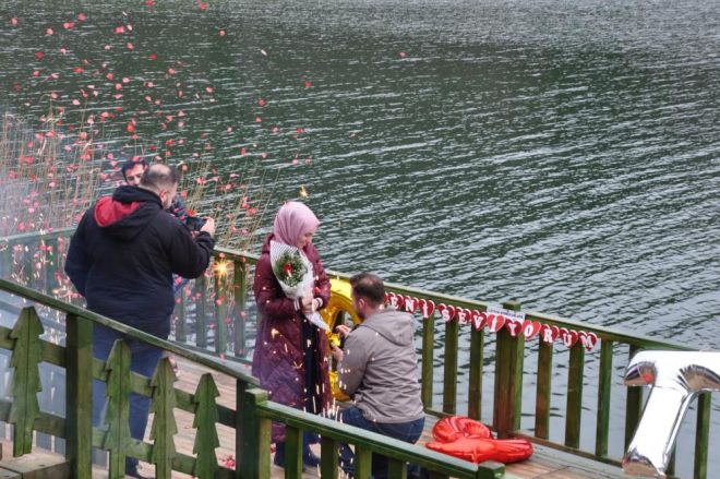 Abant Gölü Milli Parkı evlilik teklifine sahne oldu. Sakarya'da yaşayan Talha Güneş, kız arkadaşı Betül Öztürk ile birlikte Abant Gölü Milli Parkı'na geldi. Evlilik teklifi için hazırlıklarını öncesinden hazırlayan Güneş, kız arkadaşı Betül Öztürk ile göl etrafında yürümeye başladı. Betül Öztürk, Abant manzarasının en güzel göründüğü noktalardan biri olan iskele üstünde yapılan hazırlıkları görünce sevince boğuldu. Kız arkadaşına evlilik teklifi eden Güneş, 'Evet' cevabını aldı.