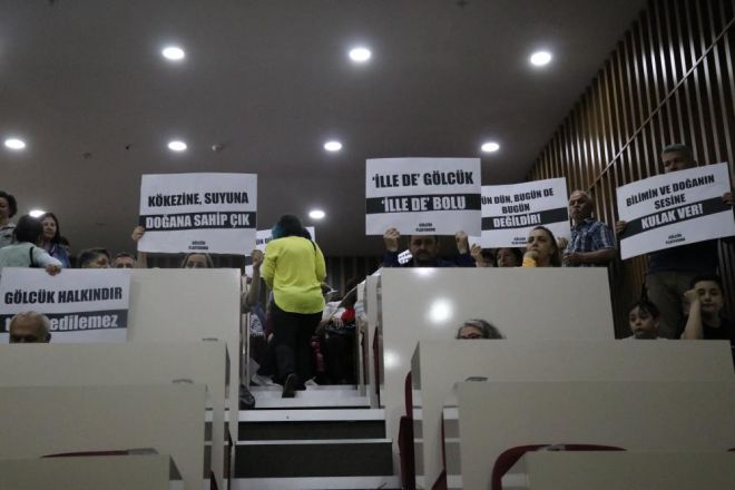 Meclis toplantısı öncesinde bungalov evlerin kullanılmasına karşı çıkan Gölcük Platformu, Bolu Belediyesi önünde eylem yaptı. Belediye meclisi başlamadan önce Gölcük Platformu üyeleri meclis salonunda bir protesto gösterisi düzenledi Oturumun başlamasıyla birlikte Gölcük Platformu üyelerinin slogan ve alkışlı protestoları devam etti.