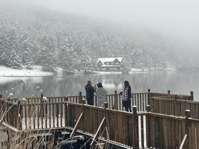 Kent merkezine yaklaşık 13 kilometre uzaklıktaki Gölcük Tabiat Parkı’nda etkili olan kar yağışının ardından güzel görüntüler oluştu. Beyaz örtüyle kaplanan Gölcük, fotoğraf tutkunlarına görsel şölen sundu. Hafta içi olması sebebiyle doğa harikası bölgeye gelen az sayıda ziyaretçi, karlı havanın tadını çıkardı. Kar yağışının gece saatlerine kadar yağması bekleniyor.