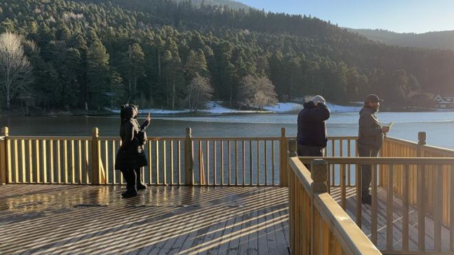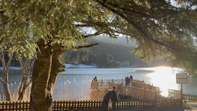 Şehir merkezine 13 kilometre uzaklıkta bulun Gölcük Tabiat Parkı’nda geçtiğimiz hafta kar yağışı etkili oldu. Kar yağışı sebebiyle yeşil alanlarda kar kalınlığı 10 santimetreye kadar ulaşmıştı. Hava sıcaklıklarının özellik gece saatlerinde sıfırın altına düştüğü Gölcük’te göl yüzeyi kısmen buz tuttu. Buz tutan göl, güzel görüntülere sahne oldu. Muhteşem manzara karşısında ziyaretçiler fotoğraf çektirerek manzaranın tadını çıkarttı.Tekirdağ’dan ailesi ile birlikte gelen Burak Aksal, “Tekirdağ’dan geliyoruz, daha önce de gelmiştik. Kızımızla ilk defa geliyoruz. Göl de donmuş, güzel fotoğraflar çektik” dedi.