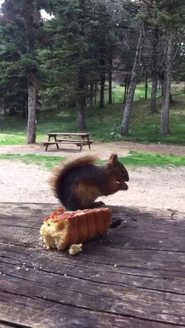 Tabiat Parkı’nda işletmecilik yapan Mutlu Kabacık, “Akşam saatlerinde adını “Faik” koyduğumuz bir sincabımız geliyor. Müşterilerin yanlarına giderek onlardan yemek istiyor. Buranın maskotu oldu. İnsanlar onun videosunu çekerek sosyal medyalarında paylaşıyor. Videoların çok fazla izlendiğini gördük” dedi.