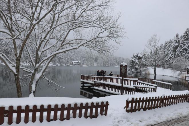 Kar yağışının etkili olduğu Gölcük Tabiat Parkı çevresindeki çam ağaçları da beyazlara büründü. Kartpostallık görüntülerin ortaya çıktığı Gölcük Tabiat Parkı’na gelen tatilciler eşsiz manzara karşısında mest oldu. Ailesiyle birlikte tatil için İstanbul’dan gelen Yusuf Karabal, “Ağabeyim tavsiye etti. Gerçekten saklı bir cennet. Harika manzara. İlk defa geldim. Karla birlikte her şey bütünleşti” dedi.