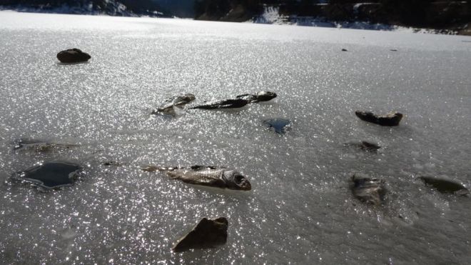 Bolu’da, havaların soğumasıyla birlikte Göynük ilçesinde bulunan Sünnet gölü buzla kaplandı. Buzla kaplanan gölde kıyı kesimlerde hava ısınmaya başlayınca buzlar erimeye başladı. Buzların erimesiyle birlikte göl kıyısında balıkların buzun içinde donarak telef olduğu ortaya çıktı. Göle ziyarete gelen vatandaşlar buzların içinden çok sayıda ölü balık çıkarttı. Uzun süredir burada bulunan balıkların öldüğü, havaların ısınmasıyla birlikte bozulup parçalanmaya başladığı gözlendi. Sünnet gölünde çok fazla ölü balık gördüklerini ifade eden vatandaşlar, "Buraya gezmeye geldik. Harika bir yer sahilde gezerken buzların içinde çok sayıda balığın donarak öldüğünü gördük. Balıkları eriyen buzların içinden çıkarttık. Ama hepsi bozulmuş ve parçalanmaya başlamış, balıkların ölmesi bizi çok üzdü" dedi.