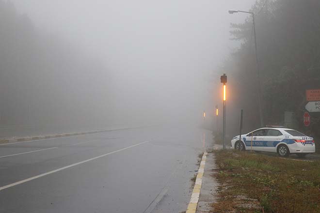 Edinilen bilgiye göre, Bolu’da, sabah saatlerinde başlayan sağanak yağış ve yoğun sis D-100 Karayolu Bolu Dağı, Elmalık, Seymenler ve Bakacak mevki'ilerinde etkili oluyor. Sis nedeniyle görüş mesafesinin yer yer 20 metreye kadar düştüğü Bolu Dağı’nda sürücüler zor anlar yaşıyor. Sürücüler, hız yapmamaları ve takip mesafelerini korumaları yönünde ışıklı tabela ve trafik ekipleri tarafından uyarılıyor.