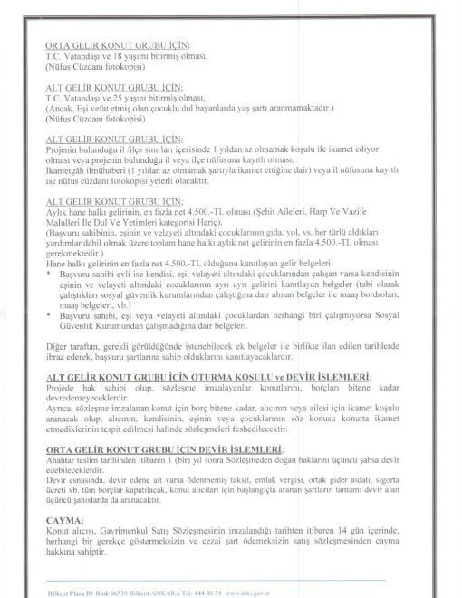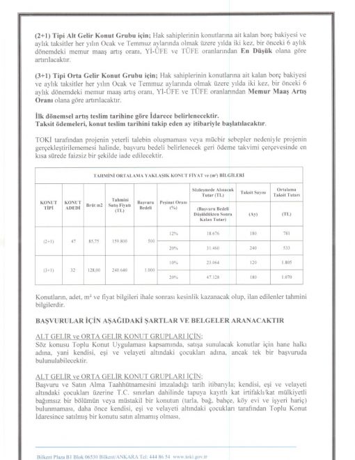 2+1 Konutlar için Başvuru Bedeli: 500.00 TL (Konut Tahmini Bedeli:159.800,00 TL)