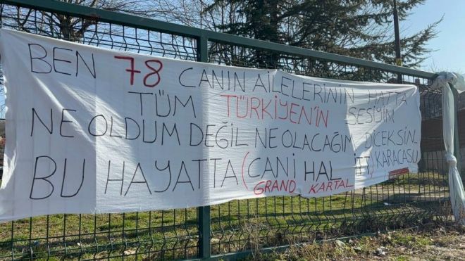 Halit Ergül'ün sahibi olduğu Gazelle Resort Otel'in giriş yolundaki parka, vatandaşlar tarafından "Ben 78 canın ailelerinin hatta tüm Türkiye'nin sesiyim. Ne oldum değil ne olacağım diyeceksin bu hayatta. Cani Halit" yazılı pankart asıldı.