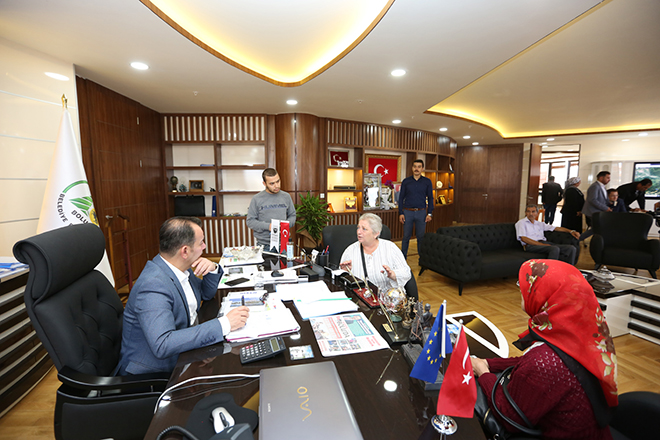 Görüşmede Bolu Belediye Başkanı Tanju Özcan, yakından ilgilendiği vatandaşların sorunlarını dinledi. Tüm talepleri tek tek not alan Özcan, yardımcı olabileceği konular ile ilgili daire müdürlerine sorunun çözümü için talimat verdi. Görüşmelerde ayrıca, seçim sonrası gönderilen tebrik çiçeklerinden elde edilen gelirlerle 8 yaşındaki oğluna akülü sandalye alınan bir anne de Başkan Özcan’ı ziyaret ederek teşekkür etti.
