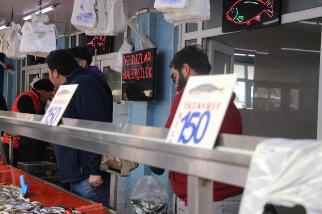 Tezgâhta çeşitli balıkların olduğu bilgisini veren Yıldız, "2 gündür hamsi yok, istavrit, mezgit, sardalya, uskumru var onları satıyoruz. Vatandaş hamsi olmayınca istavriti tercih ediyor. İstavrit kilosu 150 lira, mezgit ve uskumru kilosu 200, büyük balıklar da var, onların fiyatı stabil, palamut ise tanesini 100 liradan satıyoruz" diye konuştu.