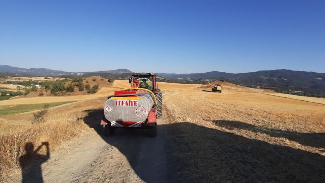 Biçerdöver nerede biçim yaparsa tankerin de orada konuşlandığını ifade eden Mehmet Tanrıkulu, "Yangın çıkmaması için tankerlerle biçerdöverlerin yanında tarlada bekliyoruz. Biçerdöver nereye giderse, tanker de oraya gidiyor" ifadelerine yer verdi.