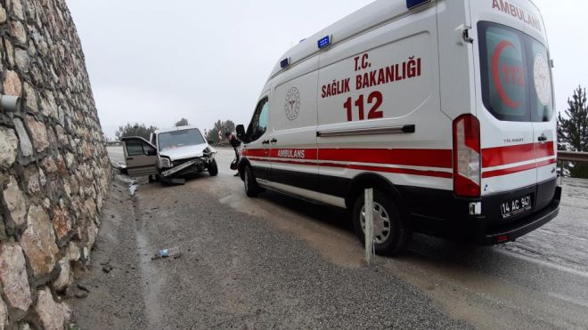 Kaza, Mudurnu ilçesi Aynalıkaya mevkisinde meydana geldi. Edinilen bilgiye göre, Ankara’nın Nallıhan ilçesinden Bolu istikametine seyir halinde olan Mehmet Öztürk idaresindeki 14 AAT 606 plakalı hafif ticari araç, Aynalıkaya geçidinde yağmur sebebiyle kayganlaşan zeminde kontrolden çıktı. Direksiyon hakimiyeti kaybolan hafif ticari araç taş duvara çarptı. Taş duvara çarpan araç içerisinde sürücü Mehmet Öztürk ve eşi Ayşe Öztürk yaralandı. İhbar üzerine olay yerine sağlık ve jandarma ekipleri sevk edildi. Sağlık ekipleri tarafından araçtan çıkartılan Ayşe Öztürk’ün kolunda kırıklar olduğu öğrenildi. Kazayı anlatan Mehmet Öztürk, "Bolu’ya hastaneye kemoterapiye gidiyordum. Aniden araç kaydı duvara çarptık, eşimde kırıklar var sanırım. Emniyet kemeri takılı değildi. Benim de durdukça ağrım başladı" dedi. Yaralılar, Bolu Abant İzzet Baysal Üniversitesi Eğitim ve Araştırma Hastanesine sevk edildi.
