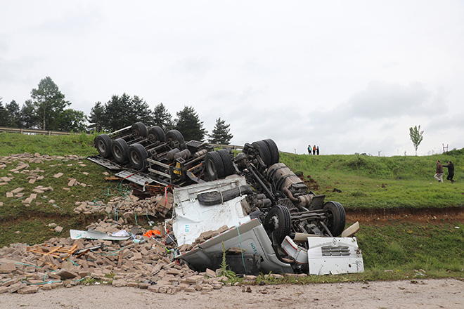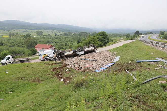 Kaza, D-100 karayolu Yumrukaya köyü mevkisinde meydana geldi. Edinilen bilgiye göre, İstanbul istikametine seyir halinde olan Albulkadir Kayaş idaresindeki taş yüklü 41 U 6711 plakalı tır, kontrolden çıkarak karşı şeride geçtikten sonra bariyerlere çarparak 50 metrelik şarampole uçtu. Ters devrilen ve hurdaya dönen tırın sürücüsü Kayaş, kazayı gören vatandaşların yardımıyla araçtan çıkarıldı. İhbar üzerine olay yerine jandarma ve 112 sağlık ekipleri sevk edildi. Ekipler, hurdaya dönen tırdan burnu bile kanamadan kurtulan sürücünün hastaneye gitmek istememesi üzerine olay yerinden ayrıldı. Şarampole devrilen tırın kaldırılması için çalışma başlatıldı.