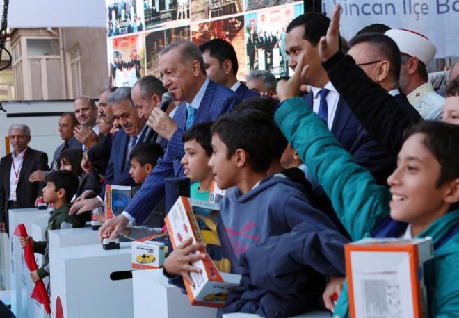 Bu çerçevede 45 ilde 80 tarihi meydanın yeniden canlandırıldığını söyleyen Erdoğan," Ankara'da da başkentimizin ilk toplu konut projesi Saraçoğlu Mahallesi'ni yeniden düzenleyerek şehrimize armağan ediyoruz. Hergele Meydanı'nda Hacı Bayram-ı Veli Hazretlerinin arşınladığı yolları temizliyoruz. Millet Bahçeleri projeleri ile her yaştan insanımıza yeni nefes alanları hayat alanları açıyoruz. Dikkat ederseniz bunların hepsi şehircilik alanlarında yaptığımız çalışmalar. Eğitimde, sporda, sosyal desteklerde durum aynı. Sağlıkta, ulaştırmada, enerjide, sanayide, tarımda durum aynı. Bir de bu CHP'ye sorun siz ne yaptınız? Ziya Paşa diyor ki; Eşek ölür semeri, insan ölür kalır eseri. Biz eserlerimizle konuşuyoruz. Güvenlikte, savunmada, adalette durum aynı. İHA'larımız var mı? SİHA'larımız var mı? Akıncılarımız var mı? Evvel Allah daha neler olacak neler.