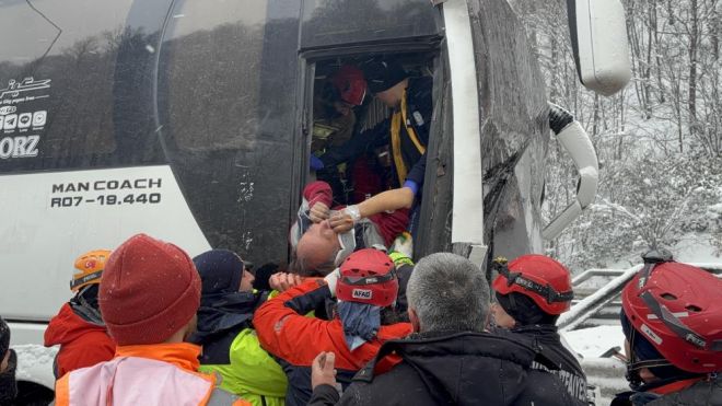 Kaza anını anlatan tır şoförü Baransel Karaca, "Kar nedeniyle sağ şerit kapalı, orta şerit kapalı, ben de arkadan sollamaya geçtim. Arkadan otobüs geldi, kayarak vurdu" dedi.