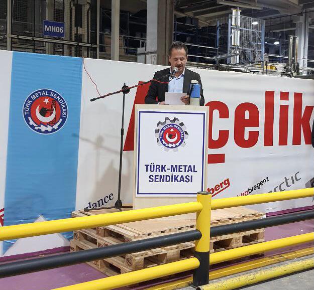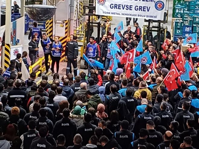 Türk-İş Bolu İl Temsilcisi / Türk Metal Sendikası Bolu Şube Başkanı Hakan Gülen yaptığı açıklamada şu ifadeleri kullandı; “Geçen hafta, MESS’e bağlı iş yerlerinde yaptığımız açıklamada, Son sözümüzü söylemiştik. Öyle anlaşılıyor ki artık sözün bittiği yere, Bıçağın kemiğe dayandığı noktaya gelmiş bulunuyoruz. MESS’in bu uzlaşmaz tutumu, Ve patronların vurdum duymazlığı karşısında Sendikamızın alacağı bütün kararların arkasında duracağımızı, Bununla da yetinmeyip, hakkımız olanı alana kadar direneceğimizi Bütün dünyaya ilan etmiştik. Evet, zaman geldi. Zaman, eylem zamanıdır… Zaman, grev zamanıdır… Dün itibariyle, Metal emekçisinin güçlü kalesi Türk Metal Sendikası Grev kararı almıştır. Bununla da yetinmeyip, Yarından itibaren bütün fazla mesaileri kaldırmıştır. Artık sıra bize geldi. Genel başkanımızın, Sözleşme masasındaki gücüne güç katmak, Alın terimiz için verdiği mücadeleyi desteklemek ve kararlarının sonuna kadar arkasında olduğumuzu göstermek için, bir kez daha, bütün metal emekçileri adına Buradan sesleniyoruz. Eyy MESS, sizin yüzde 60’lık zam teklifiniz Bizim taleplerimizin yanından bile geçmiyor. Biz ölümüne çalışırken, ölümüne üretirken, Siz bizi ölüme mahkûm etmek istiyorsunuz. Ne sendikamız, ne de biz buna asla müsaade etmeyeceğiz. Türkiye’de yaşanan ve bütün emekçilerin üzerinden silindir gibi geçen enflasyon karşısında, bize önerdiğiniz açlık ücretiyle de yetinmiyorsunuz. Bir de kazanılmış haklarımıza göz dikiyorsunuz. Bakın, buradan bir kez daha sesleniyoruz. Ne o masadaki alın terimizin karşılığından, Ne tamamlayıcı sağlık sigortamızdan, Ne de ikramiyelerimizden vazgeçeriz. Peki, ne yaparız arkadaşlar? Direniriz! Direne direne kazanırız… Direne direne kazanırız… Arkadaşlar, Üretimden gelen gücümüzü kullanmak bizim en doğal hakkımız. Elimizde bundan ve sendikamızdan başka hiçbir şey yok. Başta genel başkanımız, Onun arkasında bizler. Bugüne kadar nasıl başardıysak, Nasıl Türkiye’nin en iyi toplu sözleşmelerine imza attıysak, yine öyle olacak. Bu sözleşme Cumhuriyet sözleşmesi… Cumhuriyet gibi adına yakışır bir sözleşme olacak. Bir kez daha hep birlikte sesleniyoruz. Eylemse eylem… Grevse grev”