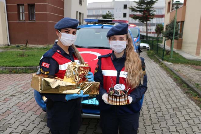 Bolu’da korona virüs salgını nedeniyle evlerinden çıkamayan çocukların 23 Nisan Ulusal Egemenlik ve Çocuk Bayramı’nı kutlamak için İl Jandarma Komutanlığı ekipleri çalışma yaptı. Ekipler, görev bölgelerinde yer alan çocuklara hediyeler alarak evlerine gitti. Çocukların bayramını kutlayan jandarma ekipleri, hediyeleri vererek miniklerin bayramını kutladı.