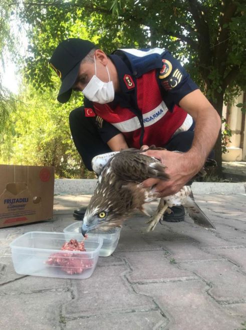 Edinilen bilgiye göre, Seben İlçe Jandarma Komutanlığı ekipleri Korucak Yaylasında yaptıkları devriye sırasında yol kenarında hareketsiz halde yatan şahin gördü. Kuşun ayağından yaralı olduğunu ve uçamadığını fark eden ekipler, yaralı kuşu ekip aracına aldı. Uçamadığı için bitkin düşen şahini ilçe jandarma komutanlığına götüren ekipler, yaralı kuşu etle besledikten sonra Bolu Doğa Koruma ve Milli Parklar Şube Müdürlüğü ekiplerine teslim etti. Yaralı şahin tedavisinin ardından doğal yaşam ortamına bırakılacağı öğrenildi.