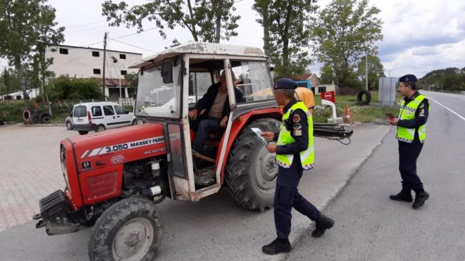 Mudurnu ilçesinin önemli geçiş noktalarından biri olan Akyazı-Nallıhan kara yolu üzerinde Mudurnu İlçe Jandarma Komutanlığı Trafik ekiplerinin denetimleri sürüyor. Yolda seyahat eden traktör, tır, otomobil, minibüsleri durduran jandarma ekipleri araçları denetledi. Denetim sırasında ekipler tarafından araç sürücüleri ve yolculara emniyet kemeri kullanımı, sürüş esnasında cep telefonu kullanmamaları, yaya geçitleri ve kontrolsüz kavşaklarda yayalara öncelik vermeleri konularında bilgilendirme yapıldı. Trafik haftası nedeniyle ‘Hayatla Yarışılmaz’, ‘Yayalar Kırmızı Çizgimiz’, ‘Trafikte Her Yıl Daha İyiye’ mottolarından oluşan broşürler sürücülere verildi.