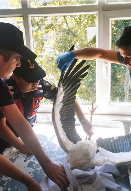 Edinilen bilgiye göre, Mudurnu Jandarma Komutanlığı’na bağlı trafik ekipleri, Taşkesti-Akyazı karayolu üzerinde seyir halindeyken yol kenarında bir leyleğin hareket edemediğini gördü. Araçlarından inerek leyleğin yanına giden ekipler, yaralı leyleği araçlarına alarak veterinere götürüldü. Veteriner tarafından tedavisi yapılan yaralı leylek, daha sonra Bolu Doğa Koruma ve Milli Parklar Şube Müdürlüğü'ne teslim edildi. Leyleğin tedavisinin tamamlanmasının ardından doğal yaşam alanına bırakılacağı öğrenildi.