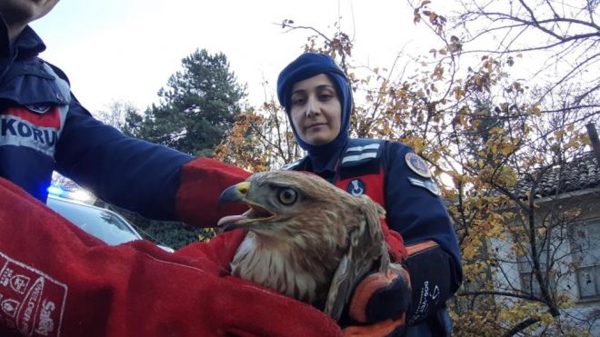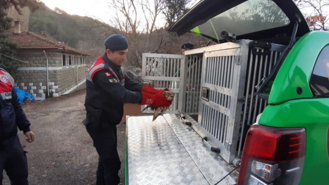 Bolu’nun Mudurnu ilçesi Taşkesti kara yolunda İlçe Jandarma ekipleri tarafından boş arazide yaralı halde şahin bulundu. Jandarma ekipleri yol kenarına aracını park ederek, boş arazide yaralı halde uçmakta zorlanan şahin için harekete geçti. Jandarmanın boş arazide eliyle yakaladığı yaralı şahin, karton kap içerisine konuldu. Yaralı şahin yakalanma anında pençesiyle jandarmayı parmağından yaraladı. Jandarma ekipleri tarafından Durum Bolu Doğa Koruma ve Milli Parklar Şube Müdürlüğü ekiplerine bildirildi. Mudurnu ilçesinden yaralı şahini teslim alan doğa koruma ekipleri, şahini tedavi altına aldı. Pençe darbesiyle parmağından yaralanan jandarma ise hastaneye giderek tedbir amaçlı aşı oldu.