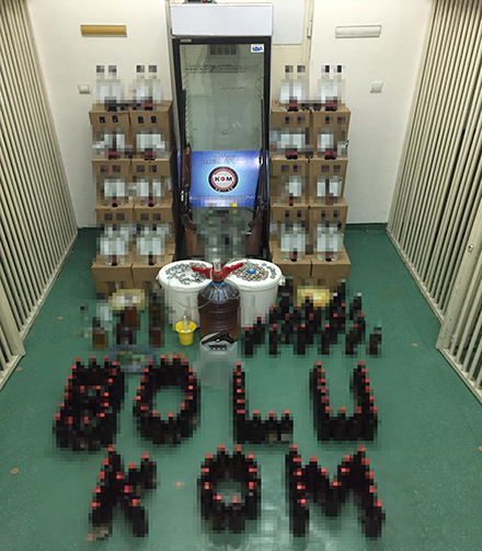 Edinilen bilgiye göre, İl Emniyet Müdürlüğü Kaçakçılık ve Organize Suçlarla Mücadele Şube Müdürlüğü ekipleri, Paşaköy Mahallesi’nde bulunan 1 ev ve 1 büfe ile aynı mahalleye ait yaylada bulunan bir evde kaçak içki imalatı yapıldığı ihbarı üzerine operasyon başlattı. Ekiplerin, baba M.D. (66) ve oğulları Z.D. (45) ile G.D.’ye (36) ait 3 farklı adrese eş zamanlı yaptıkları operasyonda, 392 litre etil alkol, 654 adet içki yapımında kullanılan alkol aroması, 114 şişe mayalanmış bira, 19 litre el yapımı şarap, 6 şişe el yapımı viski, 1 adet şişe kapaklama aparatı, 139 adet kullanıma hazır şişe kapağı, 1 adet fermente ısısını sabitlemek için düzenek kurulmuş market tipi meşrubat dolabı, 2 adet ruhsatsız av tüfeği, 1 adet ruhsatsız tabanca ve 58 adet fişek ele geçirildi. Yakalanan maddelere el konulurken, gözaltına alınan baba M.D. (66) ve oğulları Z.D. (45) ile ifadeleri alınmak üzere emniyet müdürlüğüne götürüldü.
