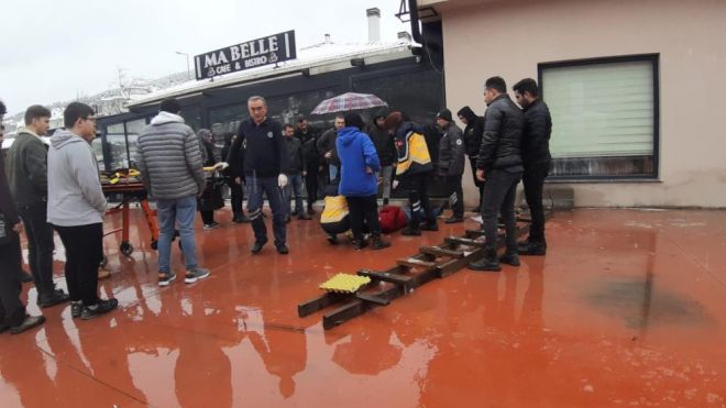 Olay, Mudurnu ilçesinde bulunan bir kafede meydana geldi. Edinilen bilgiye göre, öğle saatlerinde kafenin baca kısmında bulunan motor arızalandı. Arıza yapan baca motorunu tamir etmek üzere kafe çalışanı Serdar Çelik, merdivenle çatıya çıkmak istedi. Merdivene çıkan Çelik, kaygan zeminde merdivenin kayması neticesinde yere düştü. Yere düşen kafe çalışanı Çelik, düşmenin etkisiyle yaralandı. Durum 112 Acil Çağrı Merkezi’ne bildirildi. İhbar üzerine bölgeye sağlık ekipleri sevk edildi. Sağlık ekipleri tarafından Serdar Çelik’e olay yerinde ilk müdahalesi yapıldı. İlk müdahalesi yapılan yaralı hastaneye sevk edildi. Hastaneye kaldırılan yaralının sağlık durumunun iyi olduğu öğrenildi.
