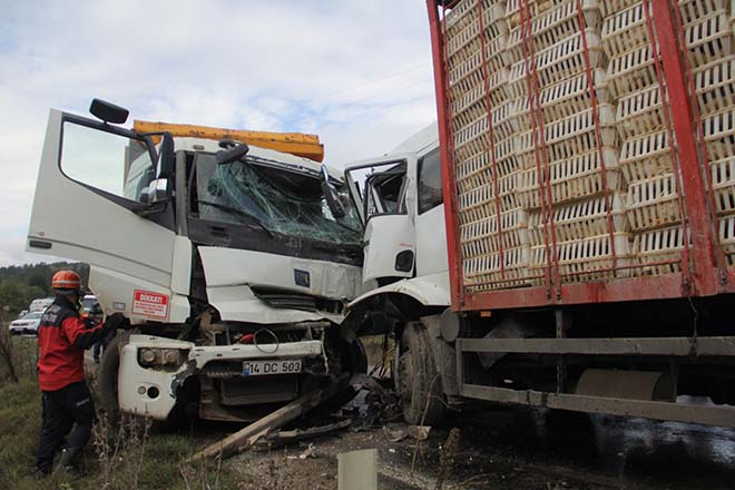 Kaza, saat 10.45 sıralarında Mengen-Gökçesu yolunda meydana geldi. Edinilen bilgiye göre, Bolu yönünden Gökçesu istikametine giden Tekin Armağan idaresindeki 14 DC 503 plakalı hafriyat kamyonu sürücüsünün direksiyon kontrolünü yitirmesi sonucu karşı yönden gelen Adnan Baykal yönetimindeki 10 PY 445 plakalı tavuk kamyonuyla kafa kafaya çarpıştı. Kazanın ardından yoldan geçen sürücülerin ihbarı üzerine olay yerine 112 Acil, jandarma ve itfaiye ekibi sevk edildi. Adnan Baykal sağlık ekipleri tarafından araçtan çıkarılırken Tekin Armağan, hurdaya dönen hafriyat kamyonunda sıkıştı.
