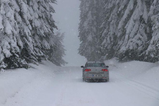 Bolu’da, sabah saatlerinde başlayan kar yağışı yüksek kesimlerde tipi şeklinde devam ediyor. Kar yağışının etkili olduğu Aladağlar bölgesinde kar kalınlığı yarım metrenin üzerine çıktı. Kar sebebiyle sürücüler güzergahta güçlükle ilerlerken İl Özel İdaresi’ne bağlı kar küreme ve tuzlama araçları çalışmalarını sürdürüyor. Ayrıca, yoğun kar yağışının ardından beyaz örtüyle kaplanan ağaçların bir kısmı üzerindeki kar birikintisi sebebiyle devrildi. Yolun zaman zaman kapanmasına neden olan devrilen ağaçlar Orman Müdürlüğü ekiplerinin çalışmasıyla yoldan kaldırıldı.