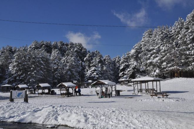 Türkiye’nin en önemli turizm merkezlerinden birisi olan Abant Tabiat Parkı kar yağışıyla birlikte beyaz örtüyle kaplandı. Kent merkezine 42 kilometre uzaklıkta bulunan ve kar kalınlığının 30 santimetreye ulaştığı tabiat parkı tatilcilerin ilgi odağı oldu. Fotoğraf tutkunlarının özellikle kış mevsimlerinde tercihi haline gelen Abant Tabiat Parkı’na gelen tatilciler karlı havada keyifli anlar yaşadılar. Göl çevresinde yürüyüş yapan, bol bol fotoğraf çektiren tatilciler eşsiz manzaranın tadını çıkardı. Abant’a aileleriyle birlikte gelen çocuklar ise kayak keyfini doyasıya yaşadı.