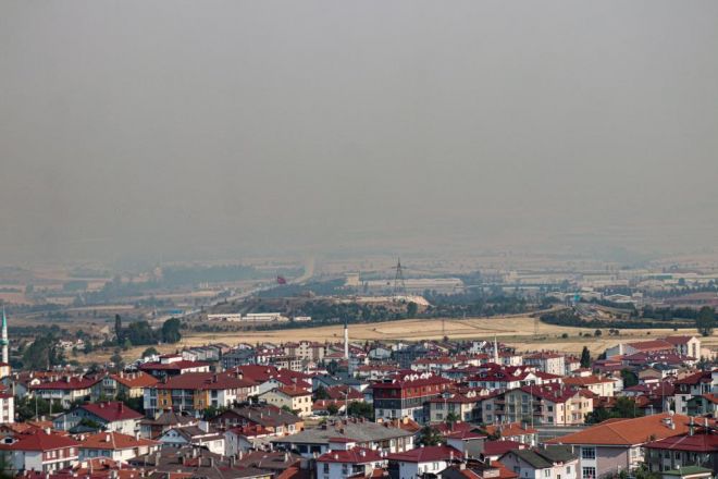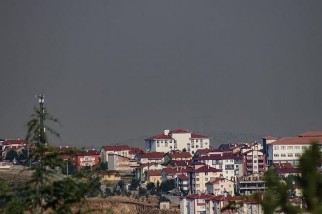 Havadaki dumanların net şekilde görüldüğü ifade eden Enes Günaydın, "Bu duman Karabük’te 4 gündür devam eden yangının dumanı. İlçemizi duman kaplamış durumda. Bolu tarafına baktığımızda hava aydınlık, Karabük tarafında ise duman tabakası sarmış durumda" dedi.
