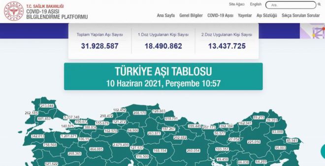 Vaka sayılarının hızla düşmeye başladığı Türkiye’de aşılama faaliyetleri de ara verilmeden devam ediyor. Türkiye genelinde 13 milyon 437 bin 725 kişi iki doz aşısını da olurken, toplam 31 milyon 928 bin 587 doz aşı uygulandı. Karadeniz’de en çok aşı uygulanan il 618 bin 791 doz ile Samsun olurken, en az aşı uygulanan il ise 27 bin 52 doz ile Bayburt oldu.