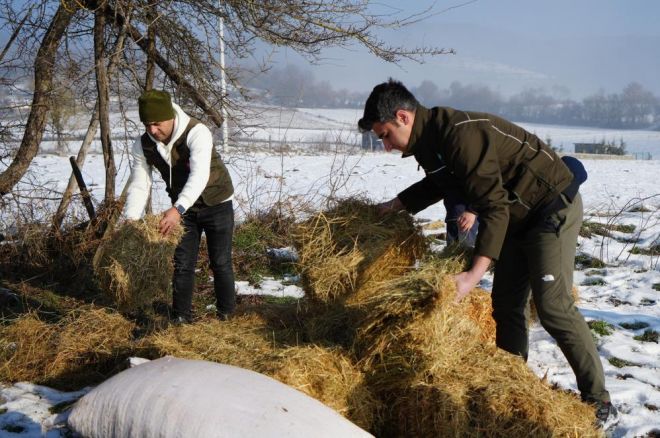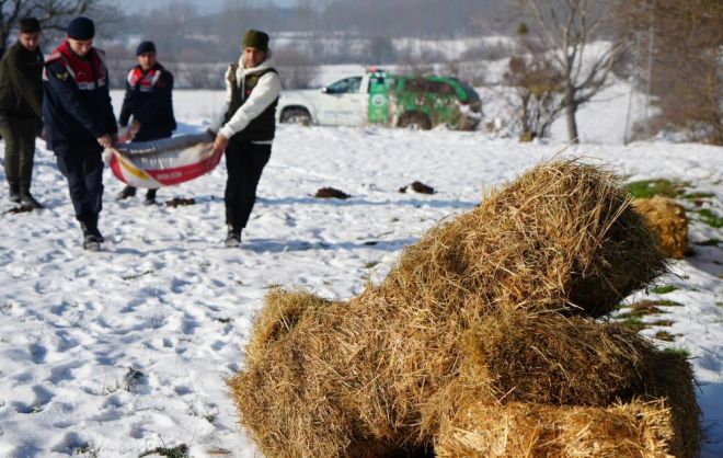 Bolu’nun yılkı atlarıyla meşhur At Yaylası’nda geçtiğimiz etkili olan kar yağışı dolayısıyla kar kalınlığı bölgede 15 santimetreye ulaştı. Karla kaplı yaylada yiyecek bulmakta zorlanan yılkı atları için Doğa Koruma ve Milli Parklar Şube Müdürlüğü ile Bolu İl Jandarma Komutanlığı bünyesindeki Çevre Doğa ve Hayvanları Koruma Tim Komutanlığı'na bağlı Hayvan Durum İzleme (HAYDİ) ekibi harekete geçti. Kent merkezine yaklaşık 15 kilometre uzaklıkta bulunan At Yaylası’na ekipler sabah saatlerine yem ve samanları araçlarına doldurarak bölgeye hareket etti. Yılkı atlarının gün içerisinde uğradığı noktalara saman balyaları ve yem dolu çuvallar bırakıldı.Ekipler tarafından kış aylarında yiyecek bulmakta zorlanan yılkı atlarına sık sık yiyecek bırakılacağı öğrenildi.