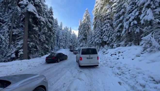 Bolu'nun gözde turizm mekanlarından Kartalkaya Kayak Merkezine gitmek isteyen vatandaşların araçları kar ve buzla kaplı yolda kaldı. Ekiplerin yetersiz kaldığı Kartalkaya yolunda tatilciler, kendi çabalarıyla araçlarını kurtarmaya çalıştı. Araçlarını iterek kurtarmaya çalışan vatandaşlar, tatillerinin çileye döndüğünü ifade etti.